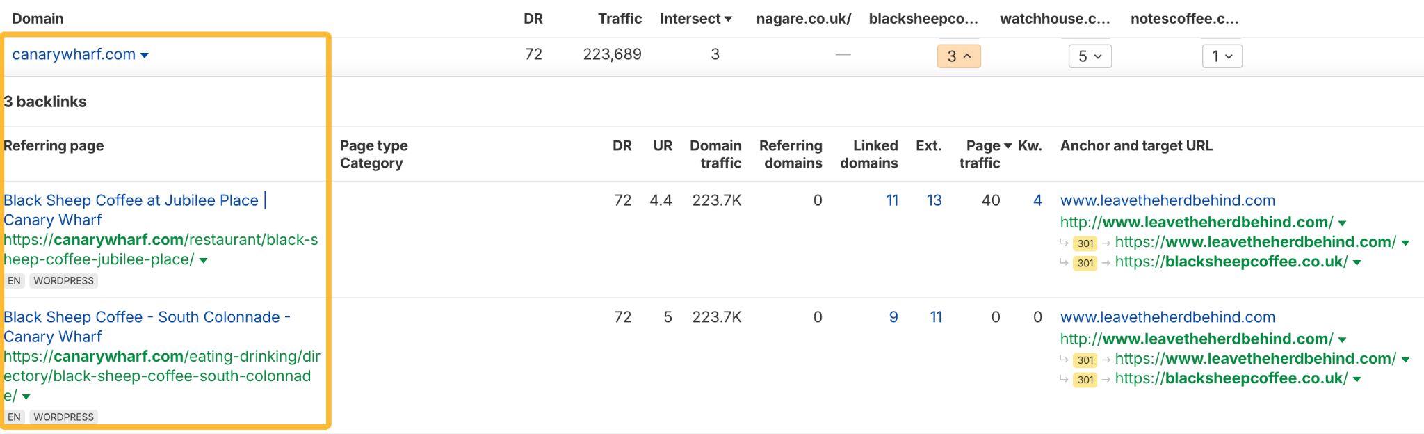 Many of them will be directories and expert-curated lists. For example, you can see that canarywharf.com links to all three competitors: