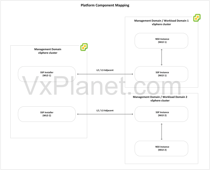 The below sketch shows the mapping between an SSP Installer, SSP instance and NSX manager.