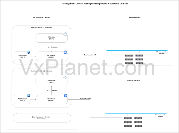 SSP components can be deployed either in a single flat network (L2) or across two different networks that are routed to each other (L3). The choice of network topology depends on the availability of IP addresses, workload domain / cluster where SSP is getting deployed and the level of isolation required for the components.