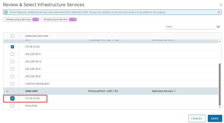 We have included two shared infrastructure servers and four services in the csv metadata. However, it’s possible that based on flow analysis, additional infrastructure services and servers exist and optionally we could include those in asset mapping and rule recommendations. Let’s do that now.
