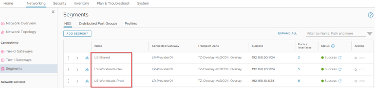 These two applications and the dependent Infrastructure services are hosted on separate NSX segments as per the network topology.