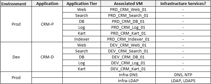 - If the use case is to microsegment applications spanning across two or more zones, we could skip the region and zone columns and include environment, application and application tier columns