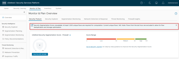 Unfortunately, being a lab environment with small scale of applications, we don’t have the minimum required volume of unique flows (1000) needed to generate a segmentation score. We will check back in later, but this was just FYI.