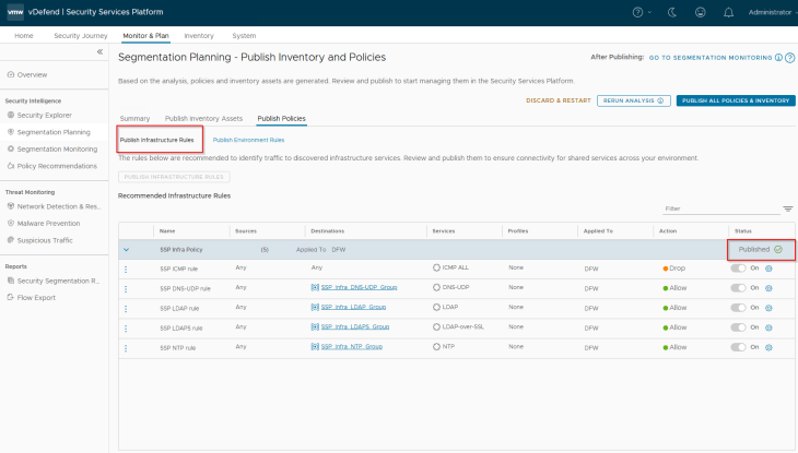 Navigate to Segmentation Planning -> Publish Policies -> Publish Infrastructure Rules, and hit on Publish.