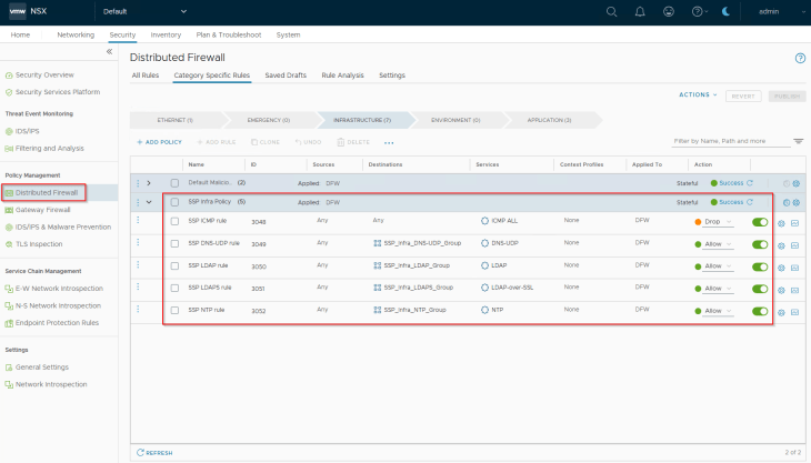 We should see the standard infrastructure rules created under the Infrastructure category in DFW.