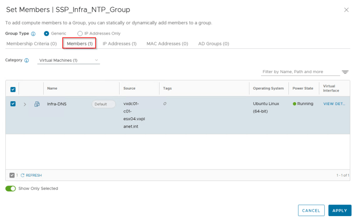 Infrastructure Assets in SSP are realized as security groups in NSX with a static membership.