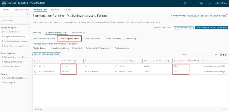 Since the Region and Zone assets were already present in SSP as part of previous hierarchy import, we see the publishing action as Refresh. This publishing action will update the VMs with Region and Zone tags (as highlighted below)