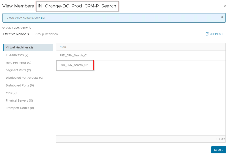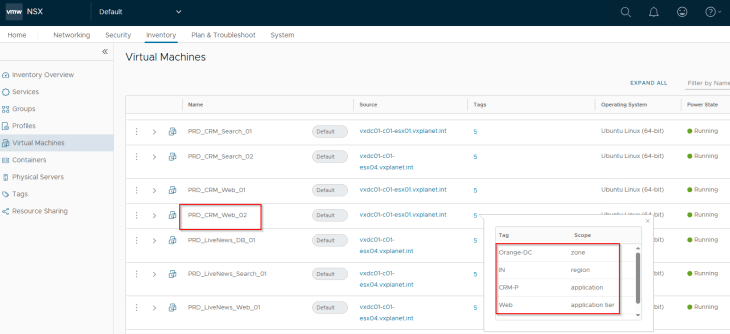 Remember the CRM Prod application that we onboarded and microsegmented in Part 4? For this article, I have scaled out the Web and Search tiers of the CRM Prod application with additional VMs. These VMs come up in the NSX inventory with no tags and group membership, and as such, they don’t receive any security policies built for the CRM Prod application.