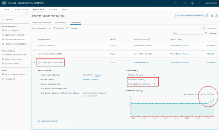 As expected, we should see a spike in the protected flows for the application, as there are no longer any blocked or unprotected flows for the application.