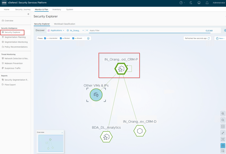 And finally, we will review the Security Explorer canvas for any unprotected flows. Optionally we could run the segmentation score and report to review the current security posture.